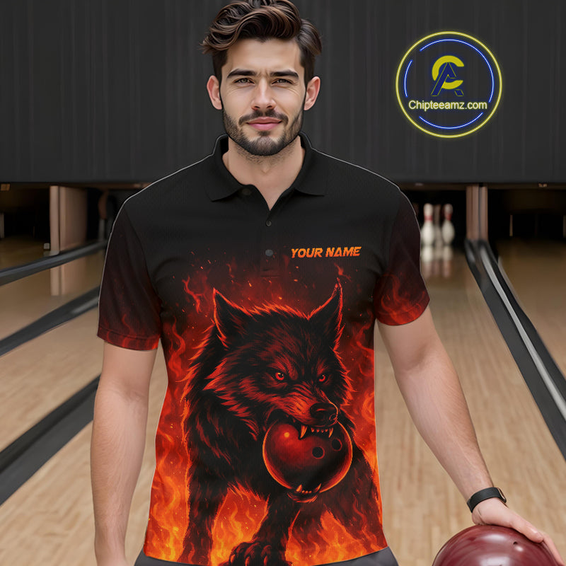 Flame Wolf Bowling Shirts for Team Women Men Custom Wolf Bowling Polo & Quarter Zip MBL195