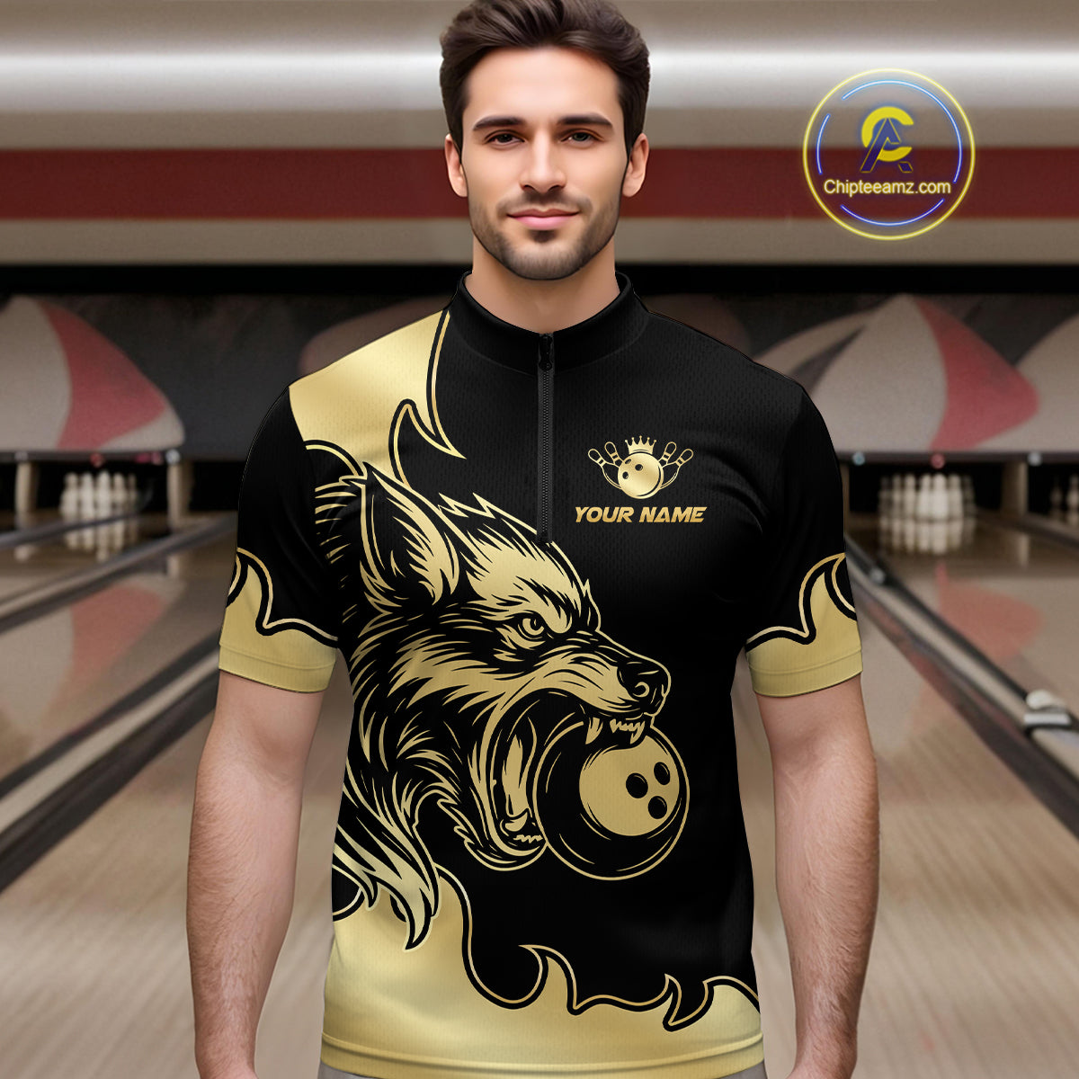 Gold Wolf Bowling Shirts for Team Women Men Custom Wolf Bowling Polo & Quarter Zip MBL194
