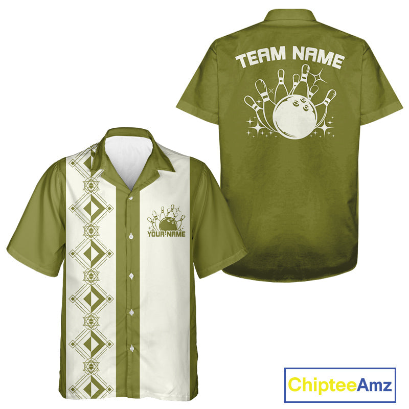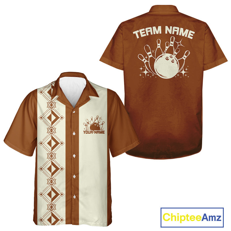 Custom Retro Bowling Button Up Shirt , Classic Vintage Bowling Team Hawaiian Shirt IPHW10072
