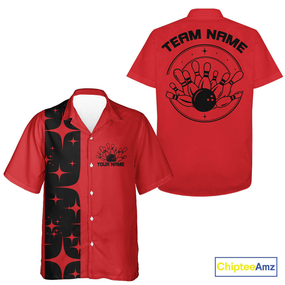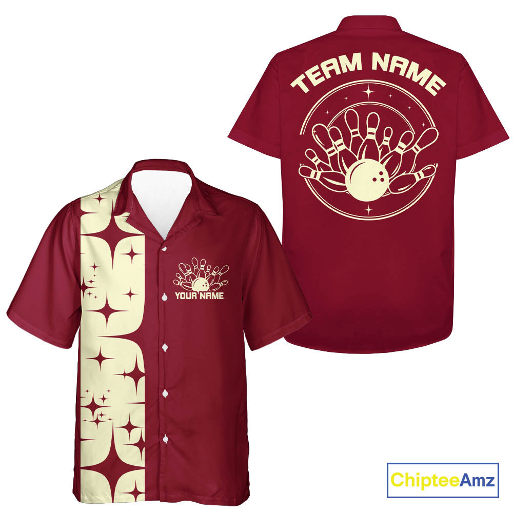 Custom Vintage Bowling Men And Women Hawaiian Shirts, Retro Style Bowling Team Shirt IPHW10078