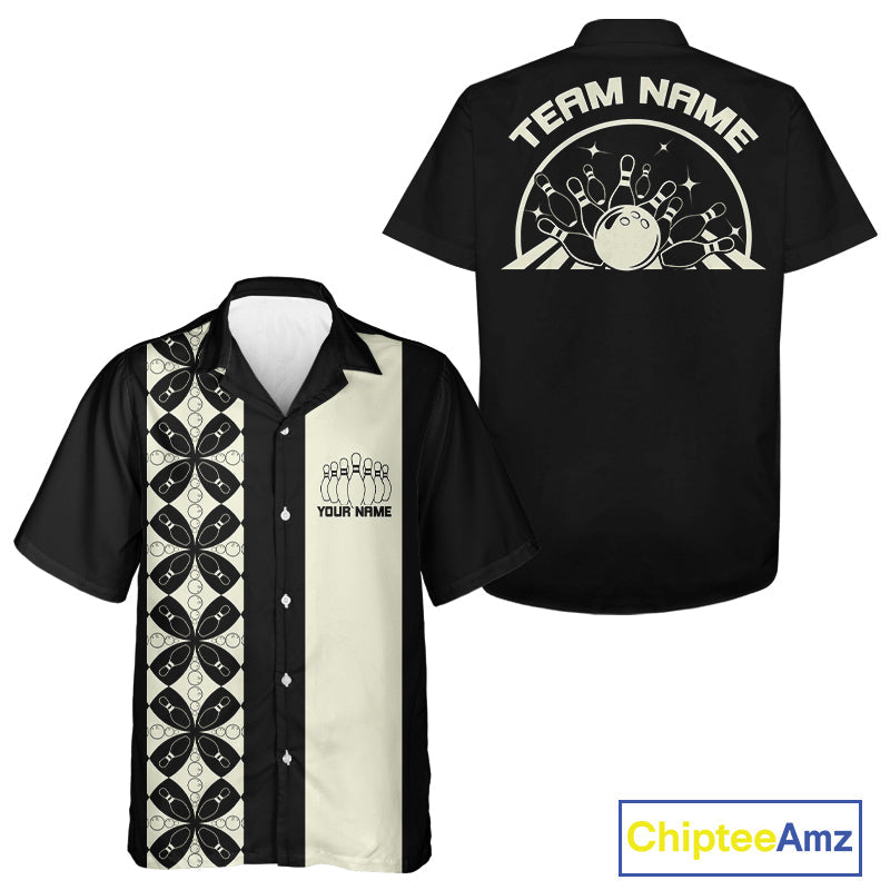 Custom Retro Style Bowling Button Up Shirt, Vintage Bowling Hawaiian Team Shirt IPHW10079