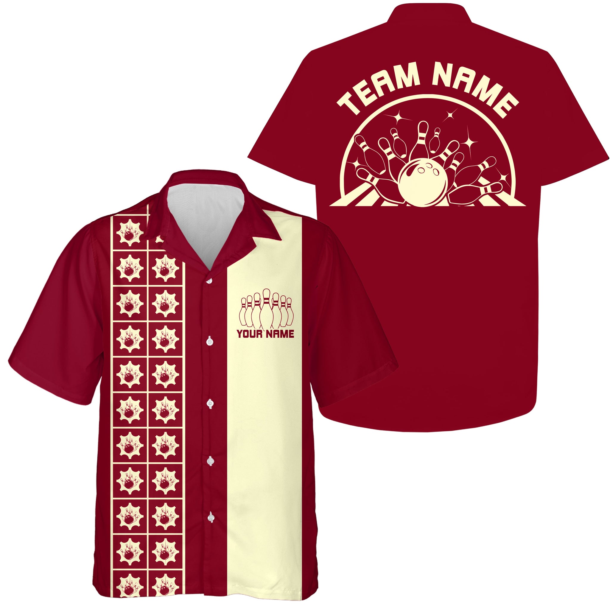Custom Retro Style Bowling Button Up Shirt, Vintage Bowling Hawaiian Team Shirt IPHW10080