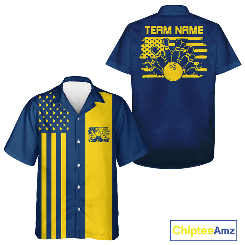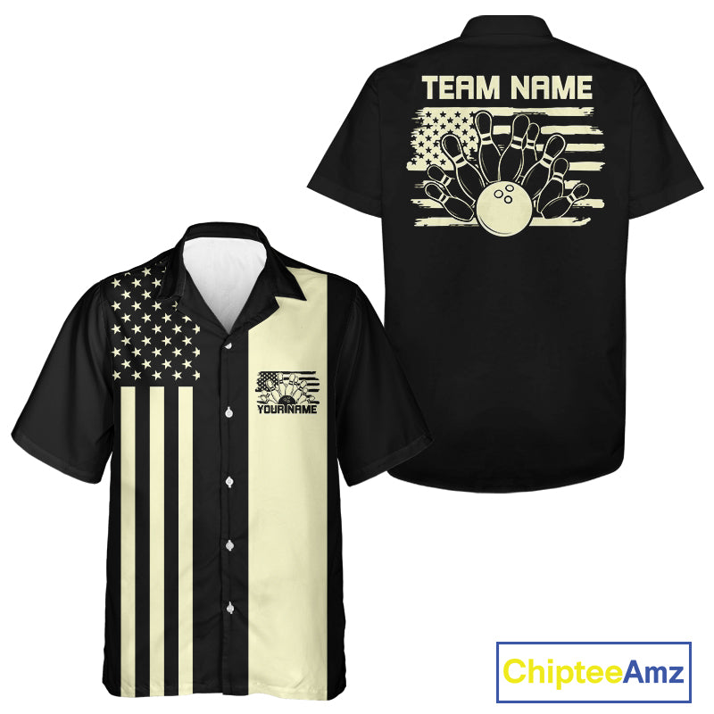 Custom Vintage US Flag Patriotic Bowling Button Up Team Shirt For Men And Women IPHW10085