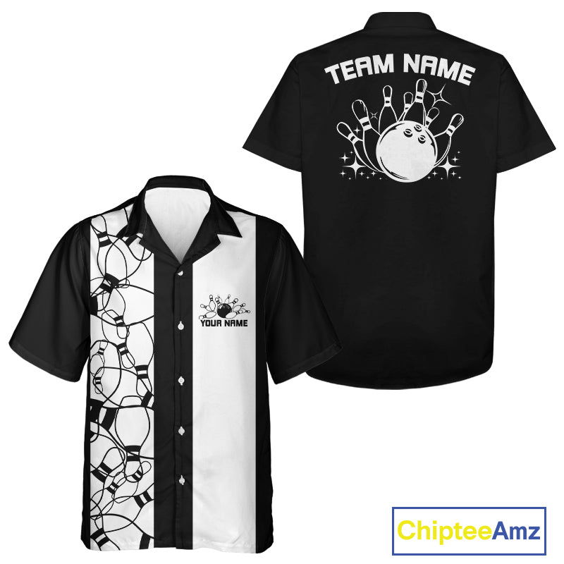 Custom Bowling Pin Pattern Vintage Bowling Team Shirt, 50S Retro Bowlers Outfit IPHW10087