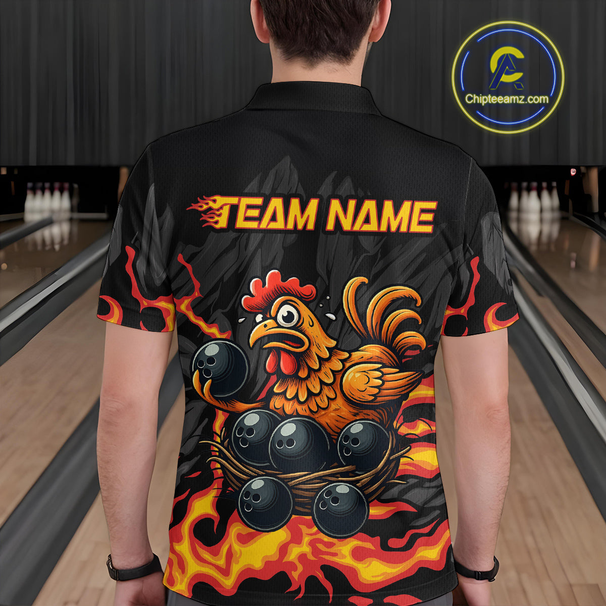 Personalized Chicken Bowling Shirt Orange Flame Bowling for Men Team League Polo & Quarter-Zip QZT706