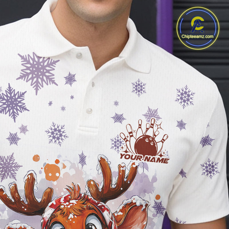 Custom Cute Funny Reindeer Christmas Bowling Men Polo Shirts, Xmas Team Bowling Shirt IPHW10112