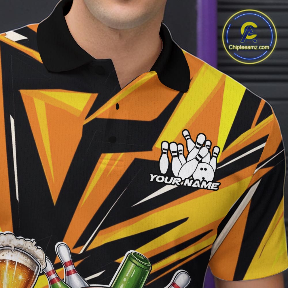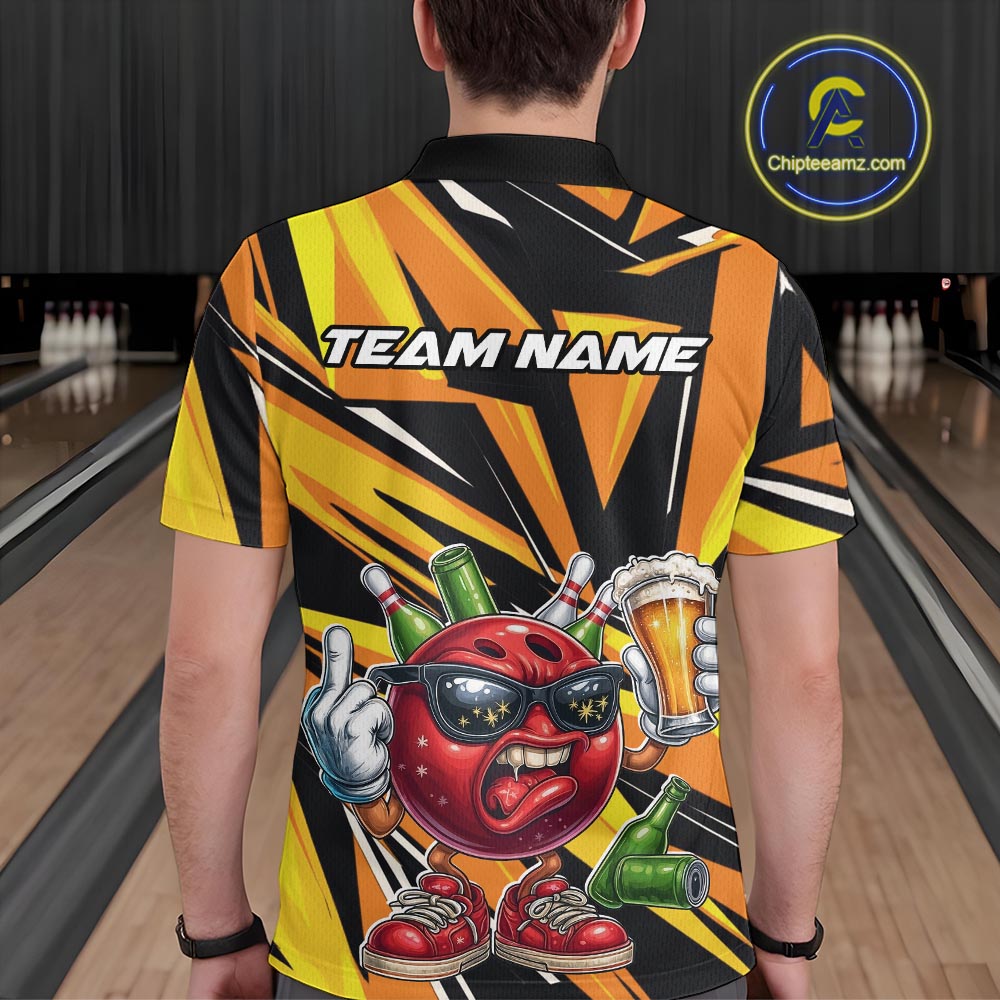 Custom Funny Bowling Ball Drink Beer Bowling Men Polo Shirt, Yellow Bowling Team Shirt IPHW10123