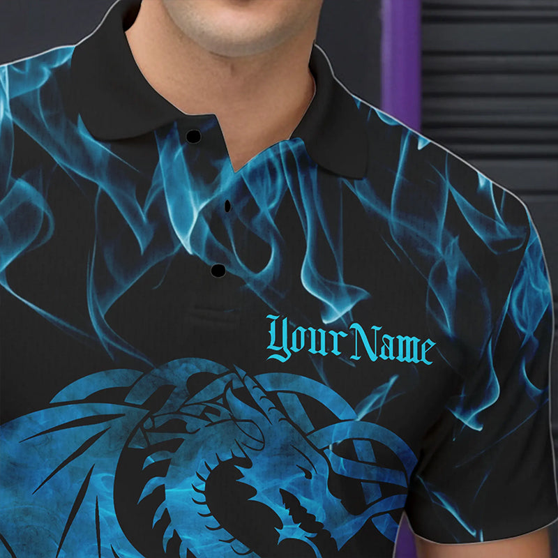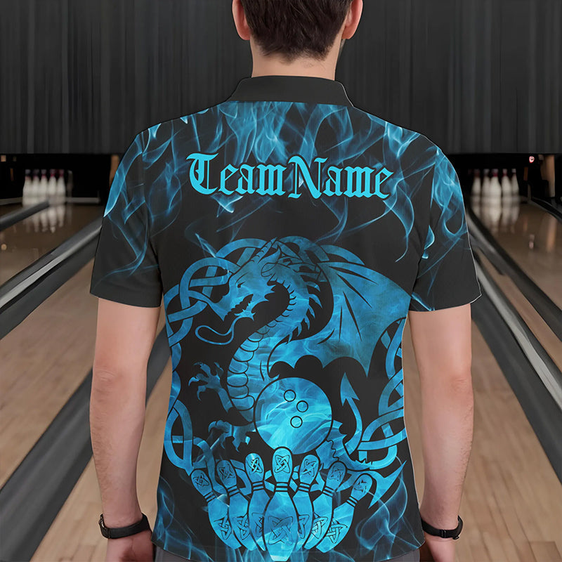 Custom Blue Fire Flame Viking Dragon Bowling Polo Team Shirts For Men, Celtic Bowling Shirt IPHW8874