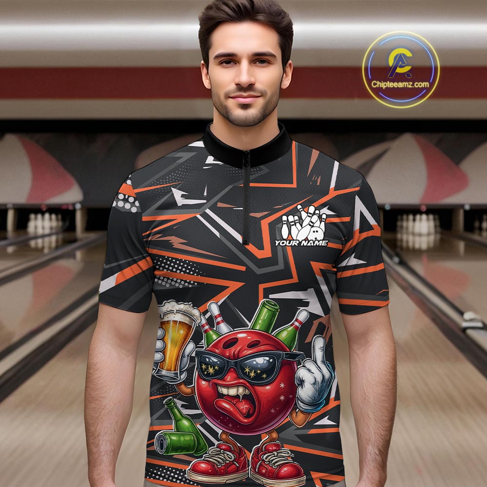 Custom Funny Bowling Ball Drink Beer Bowling Men Quarter-Zip Shirt, Orange Bowling Team Shirt IPHW10121