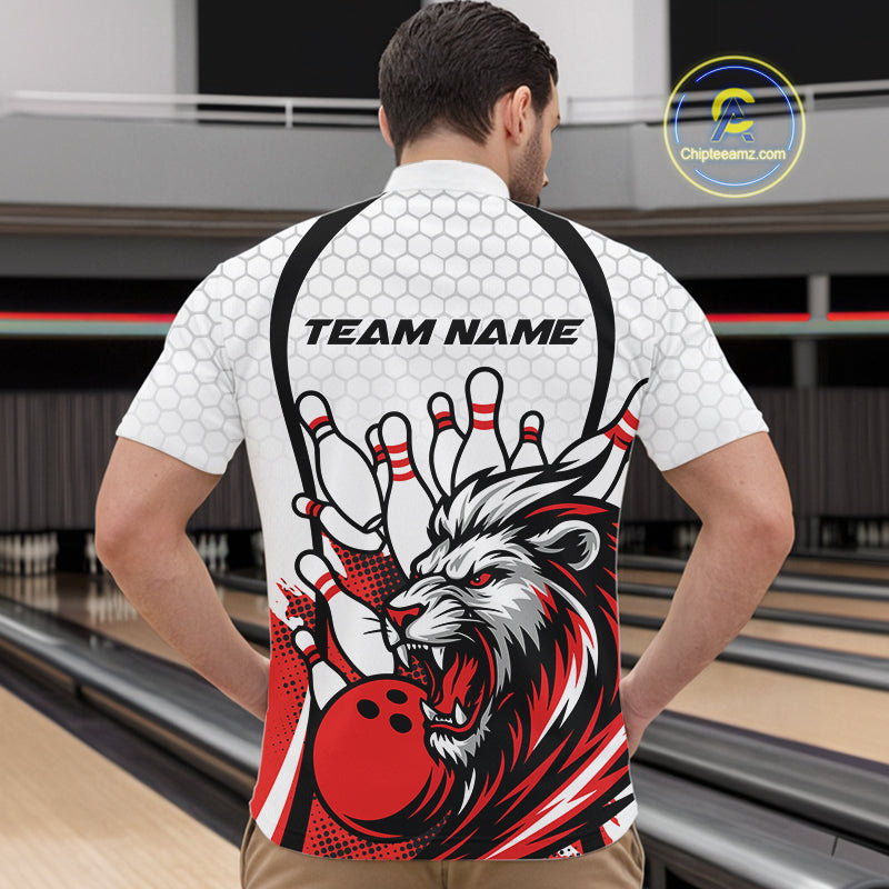 Custom Red Lion Bowling Men Quarter-Zip Shirt, Lion Bowling Team League Shirt IPHW10124