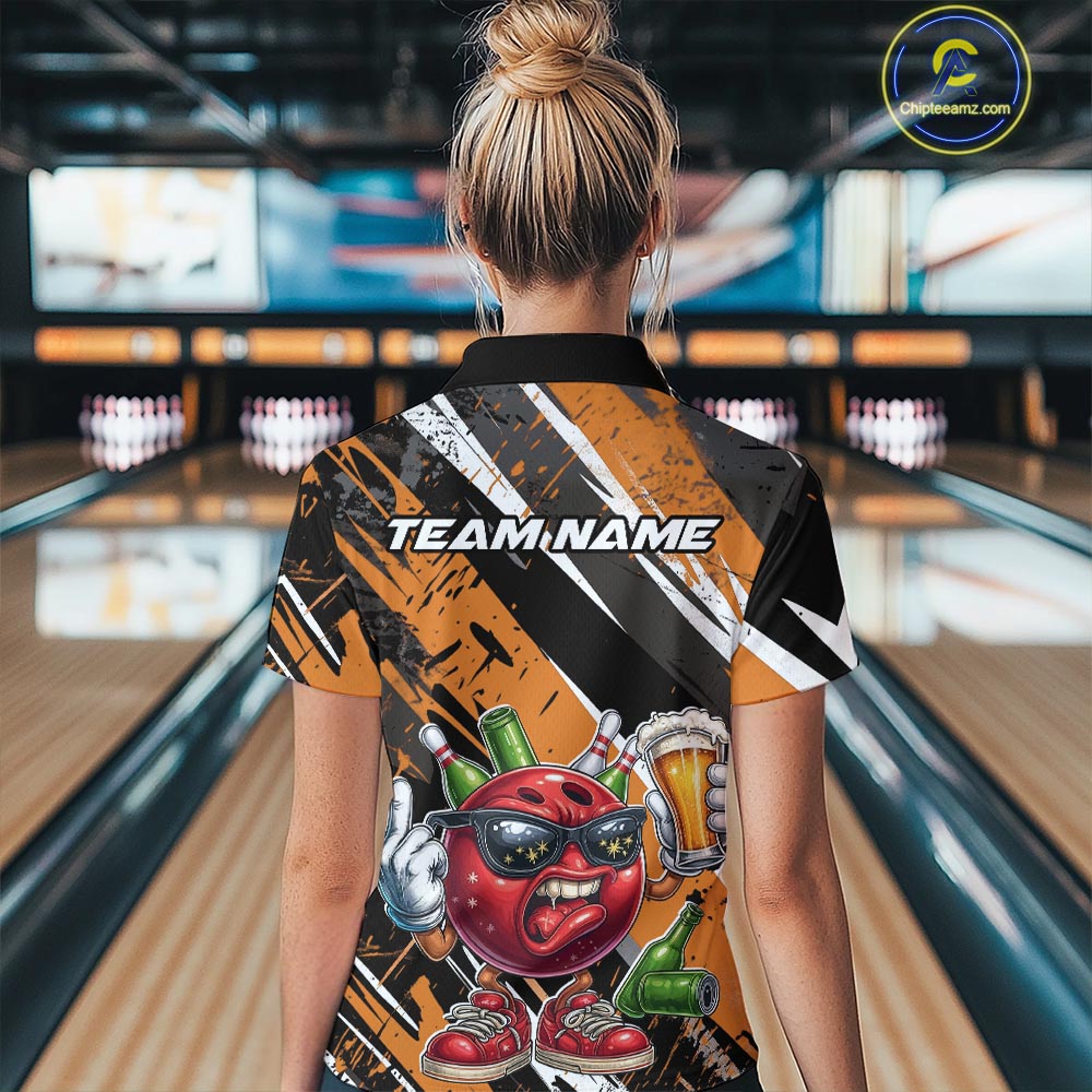 Custom Funny Bowling Ball Drink Beer Bowling Women Quarter-Zip Shirt, Orange Team Shirt IPHW10118