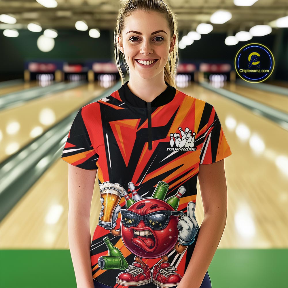 Custom Funny Bowling Ball Drink Beer Bowling Women Quarter-Zip Shirt, Orange Team Shirt IPHW10122