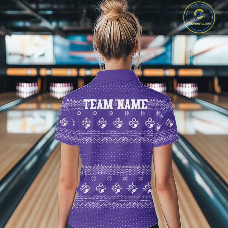 Custom Funny Santa Christmas Women Bowling Quarter-Zip Shirts, Purple Xmas Team Outfit IPHW10141