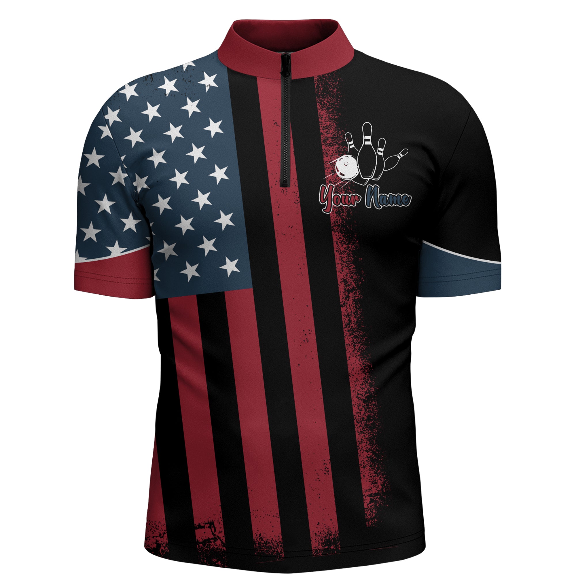 USA Flag Bowling Quarter-Zip Shirt Men Custom Bowling Jersey Patriotic Bowling Team League Shirt BDT112