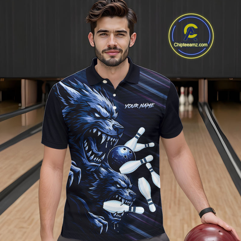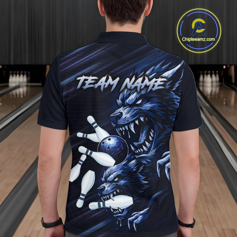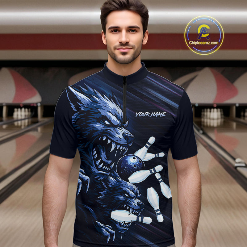 Wolf Bowling Shirts for Team Women Men Custom Blue Wolf Bowling Polo&1/4 Zip MBL192