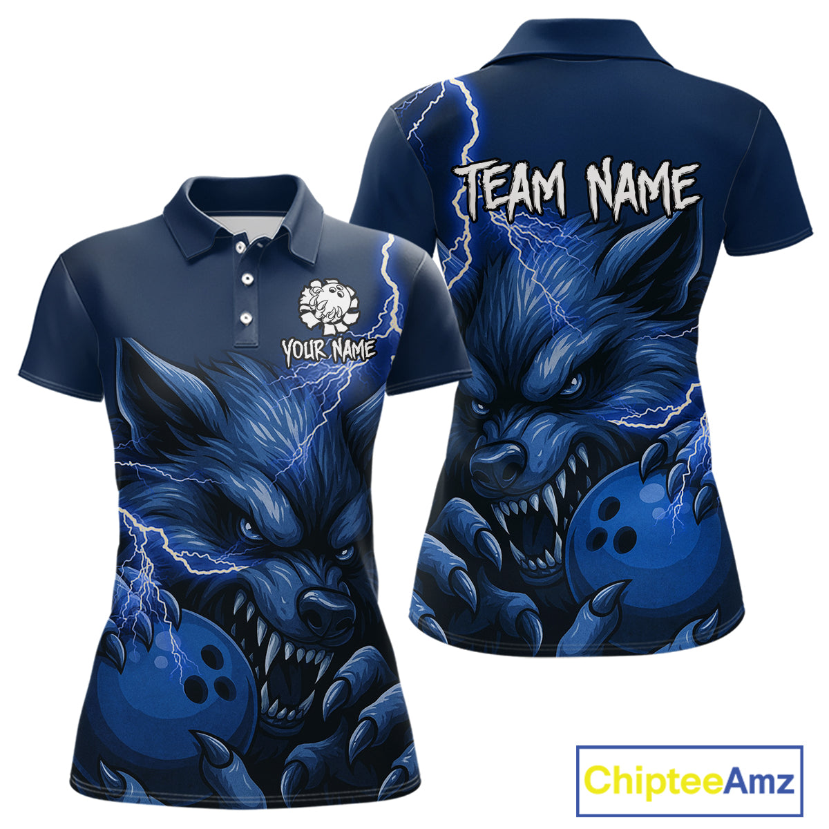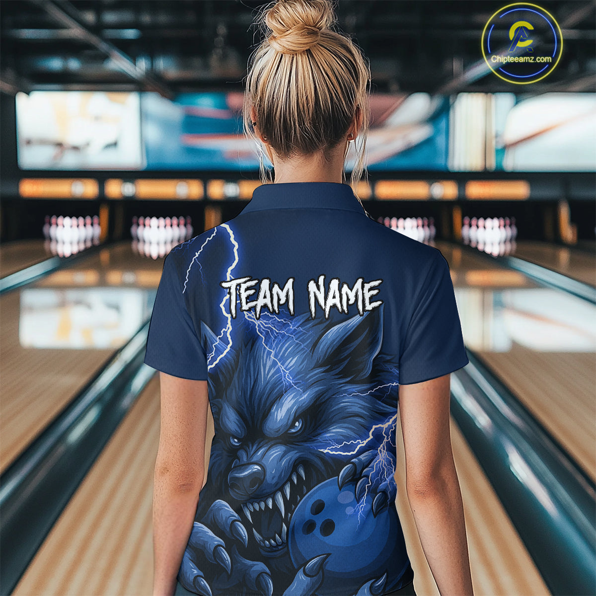 Wolf Bowling Shirts for Team Women Men Custom Blue Wolf Bowling Polo and 1/4 Zip MBL191