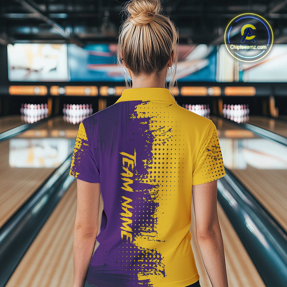 Yellow and Purple Bowling Polo, Quarter Zip shirts for Women Custom Bowling Team Jerseys NQS10222