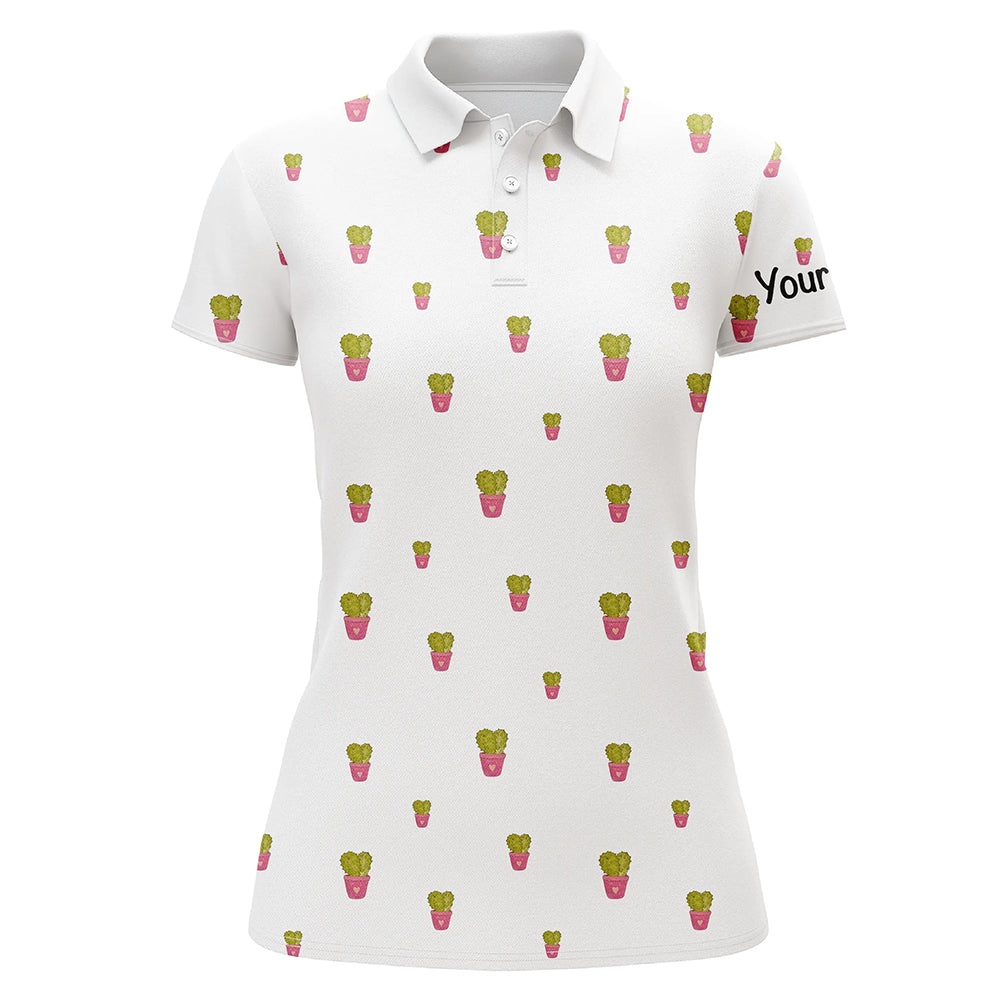 Personalized cute cactus white pattern Women golf polo shirts custom cactus golf shirt, golfer gifts NQS8320