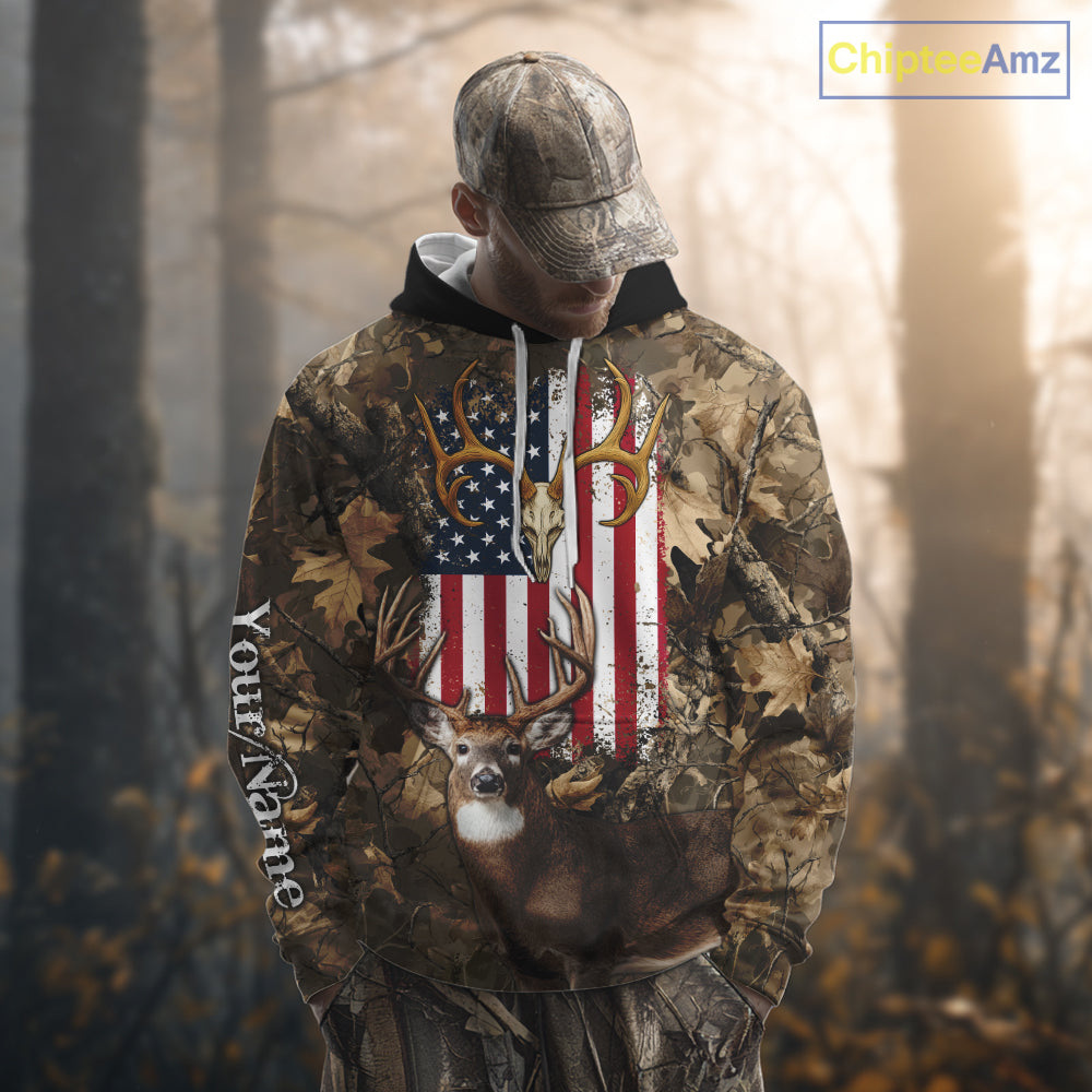 American Flag Whitetail Deer Camo Hunting Shirt, Best Hunting Clothes for Deer Hunting Season NBT64