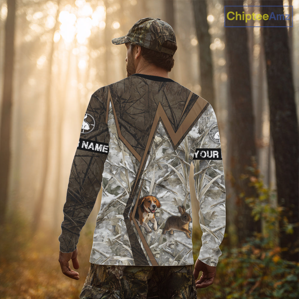 Beagle Dog Chasing the Rabbit Camo Custom Name Shirts, Rabbit Hunting Gifts NHT283