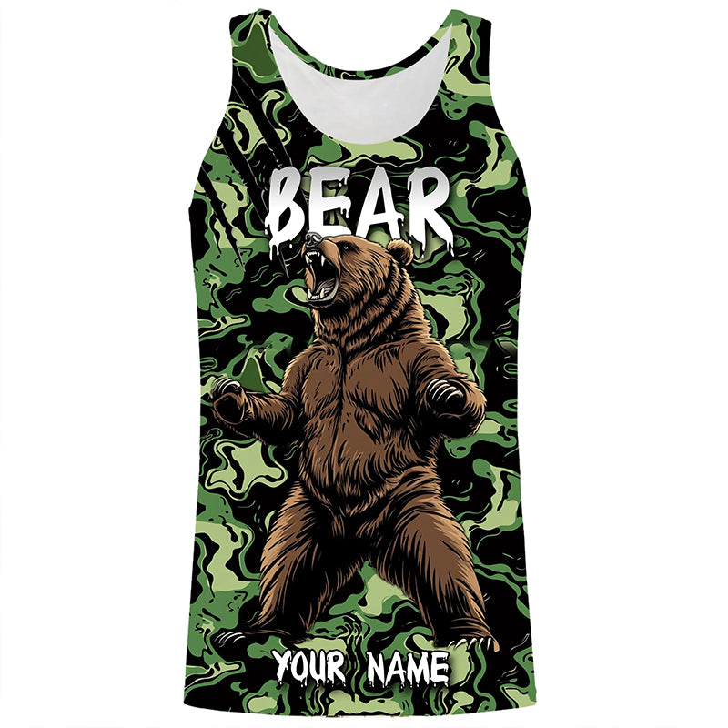 Bear hunter big game hunting green camouflage Customize Name 3D All Over Printed Shirts NQS4008