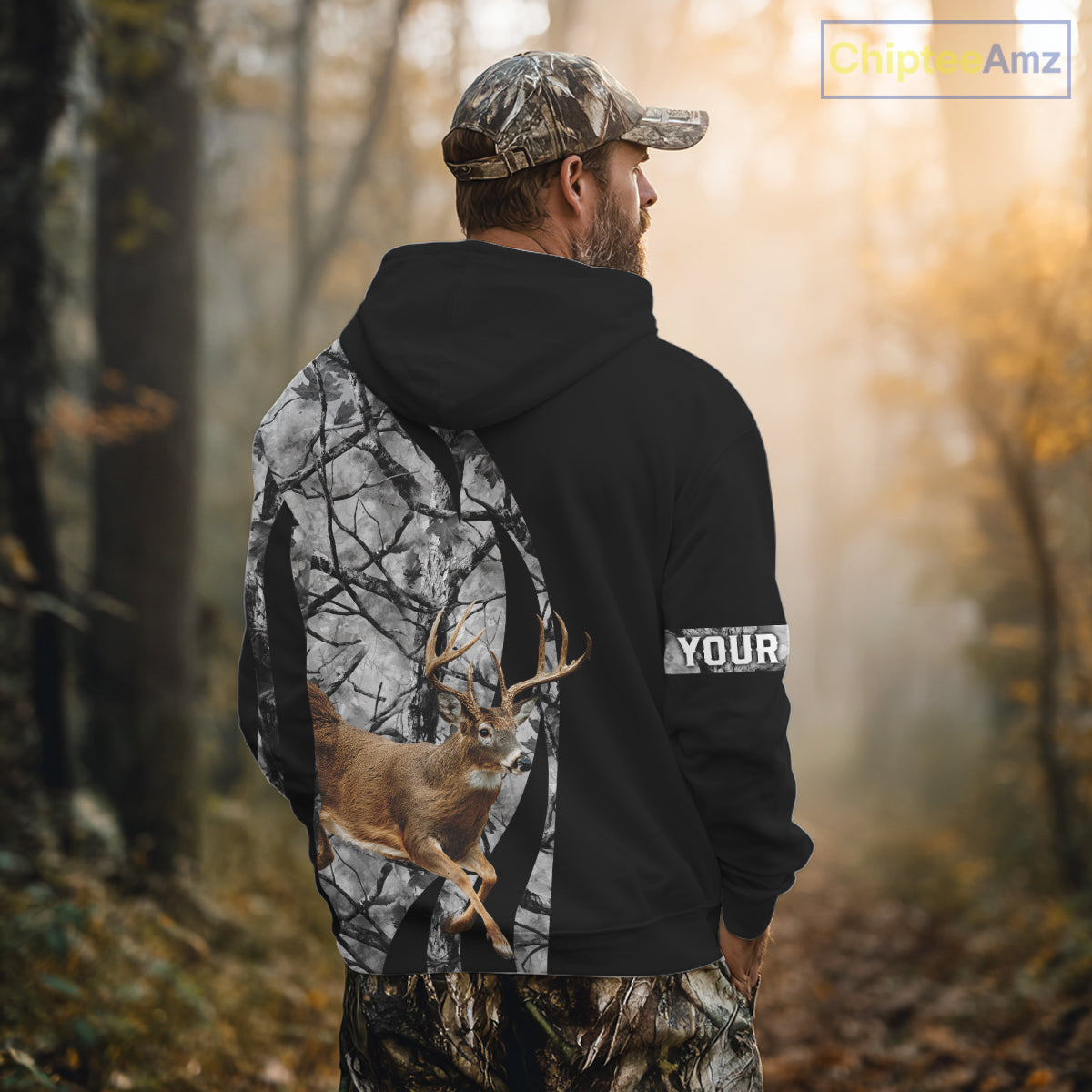 Deer Jumping Hunting 3D Black Gray Camo Custom Name All Over Print Shirt Hunting Shirts NHT206