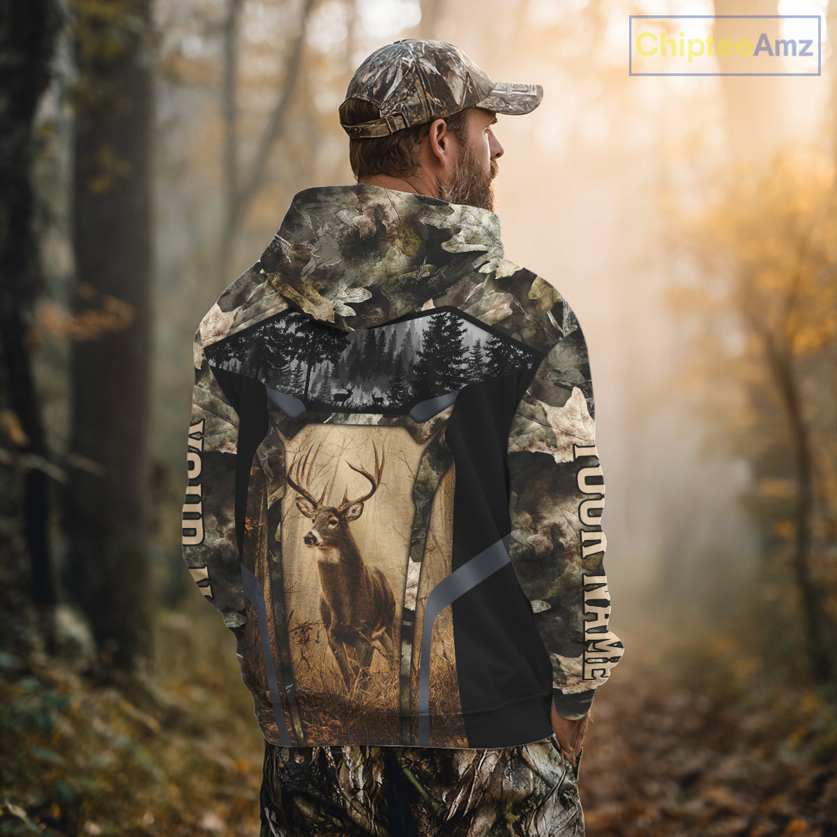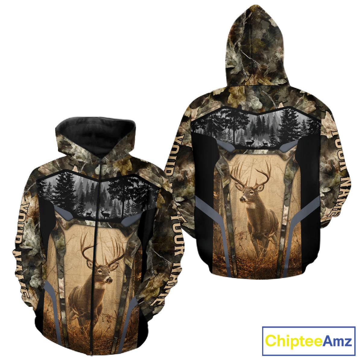Personalized Whitetail Deer Hunting Forest Camo 3D Printed Shirts, Deer Hunting Camouflage Shirt NBT221