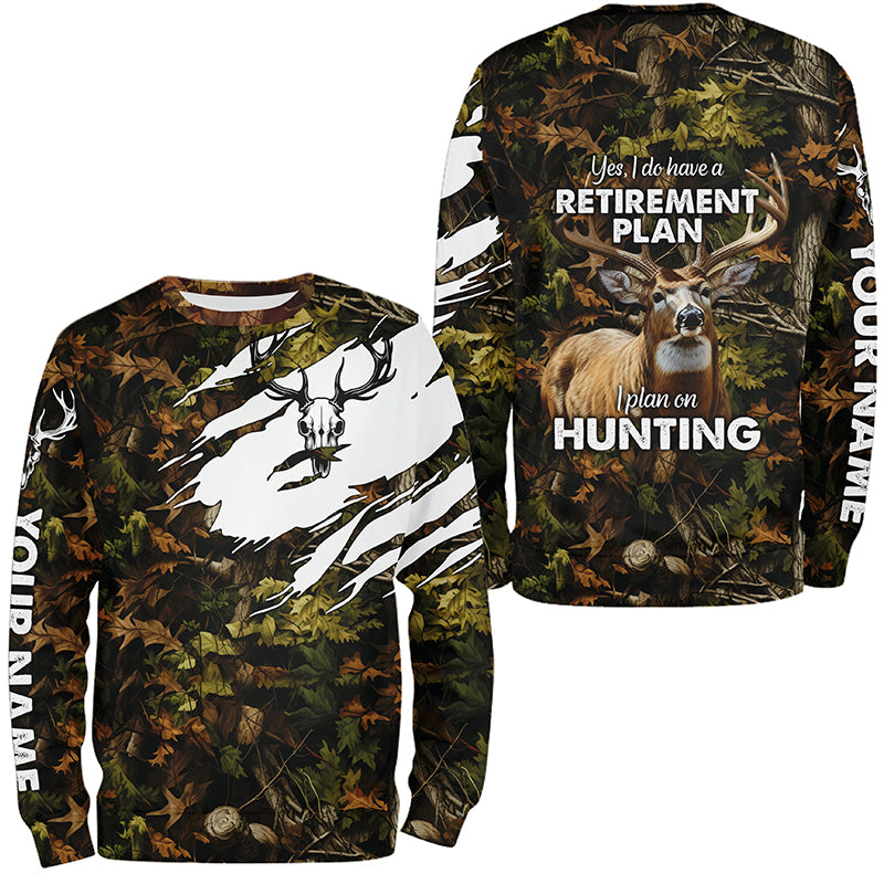 "Yes I Do Have A Retirement Plan I Plan On Hunting" Deer Hunting camouflage Custom Hunting Shirts NQS2564