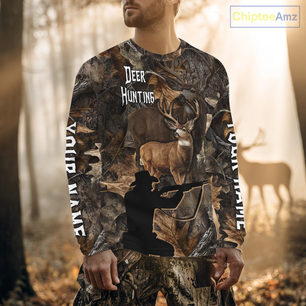 Whitetail Deer Hunting Brown Camo with Hunter 3D Print Custom Name Shirts, Hunting Gift NBT269