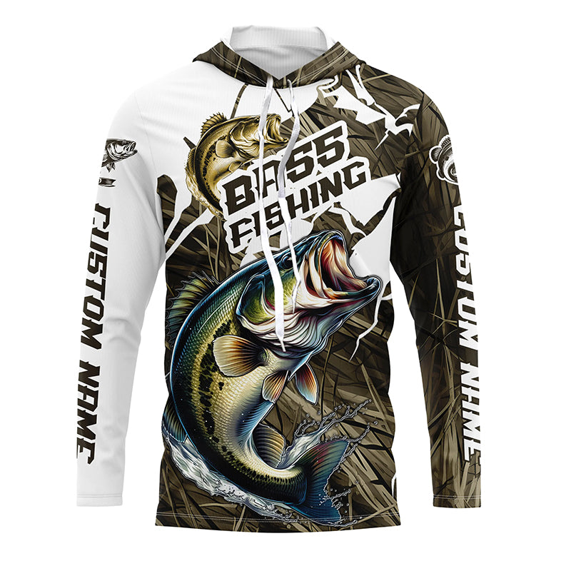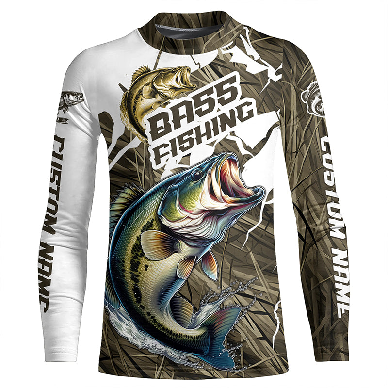 Largemouth Bass Fishing Custom Long Sleeve Tournament Shirts, Camouflage Bass Fishing Jerseys IPHW6625