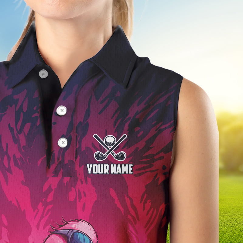 Funny Flamingo pink camo flame golf ball Women Golf Sleeveless Polo Shirt Custom Ladies Golf tops NQS9697