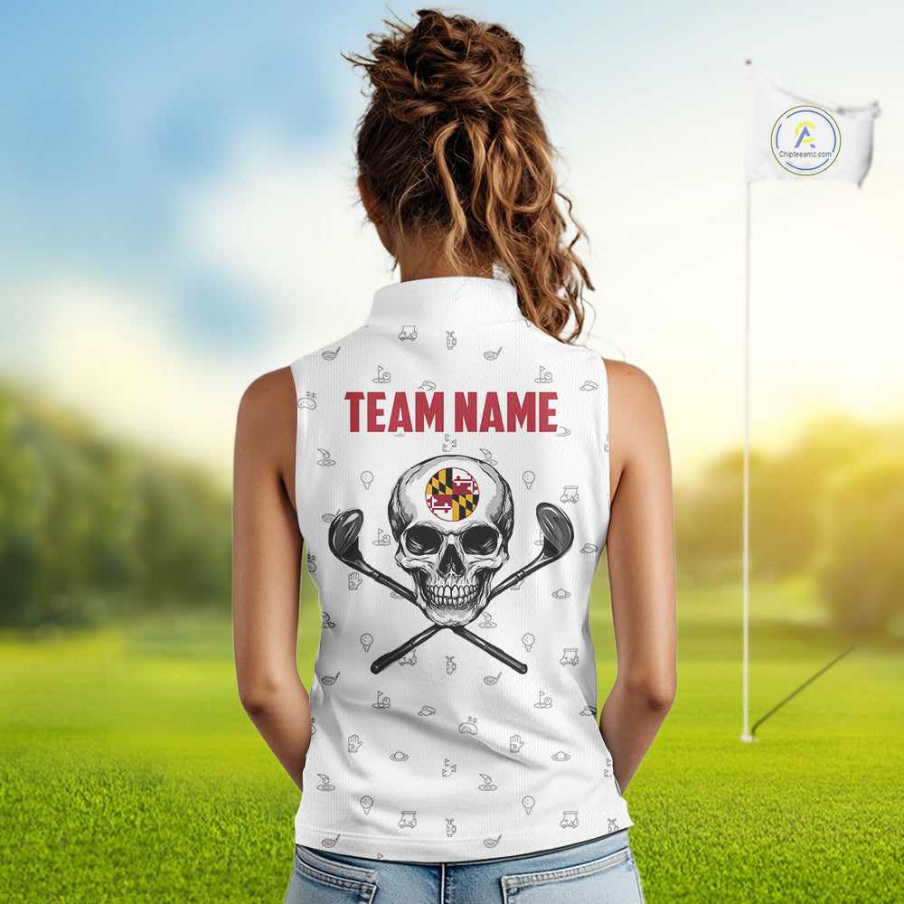 Maryland Flag Golf Clubs Skull Golf Camo Women sleeveless polo shirt Custom Patriotic Golf Team Jersey NQS9937