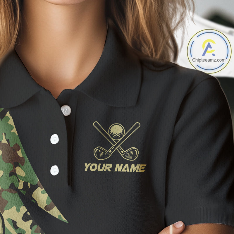Women Golf polo shirt flame golf ball Custom green camo ladies Golf attire, personalized golf gifts NQS10052