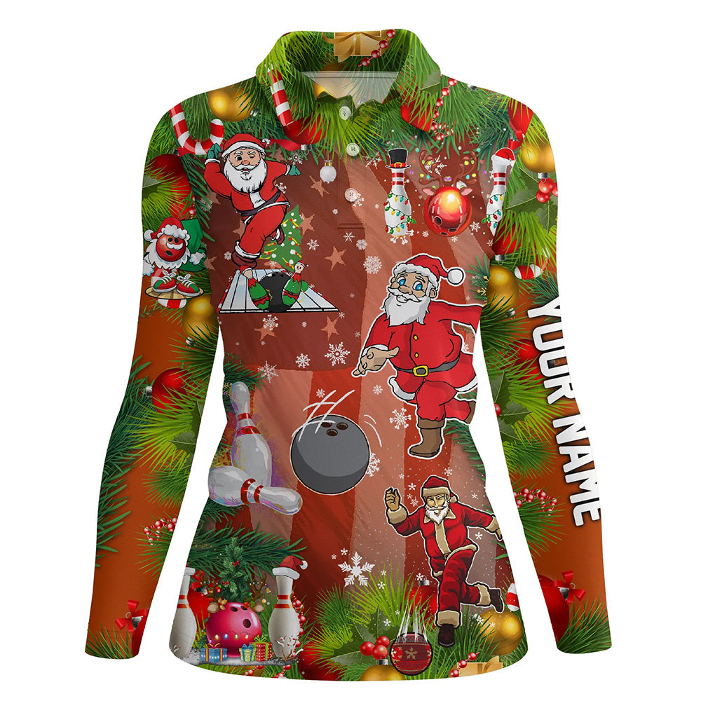 American flag Santa Christmas Bowling Shirts For Women Team League Jersey Custom Bowling Polo Shirts NQS6540