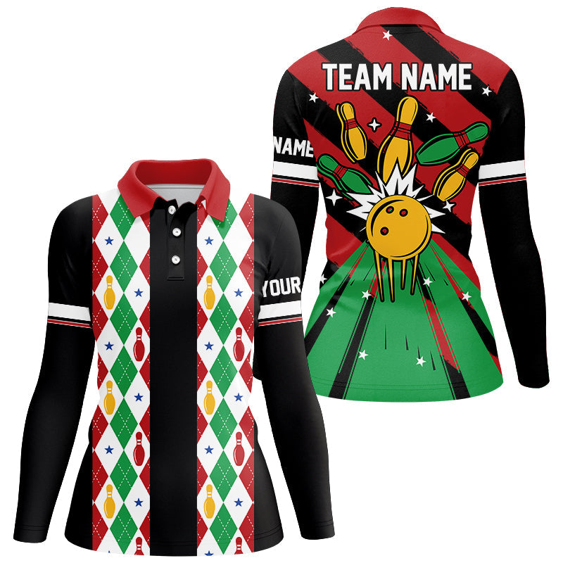 Christmas argyle pattern Bowling Polo, 1/4 zip shirts For Women Custom Xmas Team Bowling Jerseys NQS8985