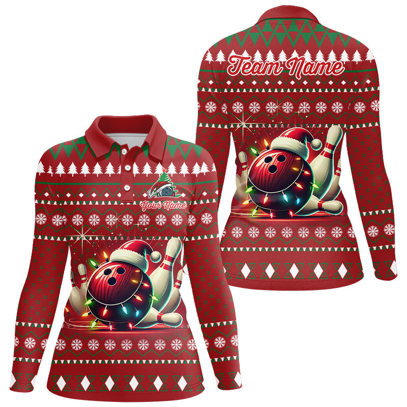 Funny ugly Christmas Red Women's Bowling Shirts Custom Team Bowling Jerseys Xmas Gift for bowlers NQS8967