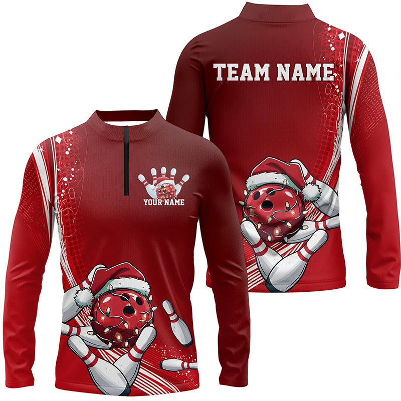 Custom Red Christmas Bowling Shirts For Men, Xmas Bowling Team Uniform Bowler Outfits IPHW7854