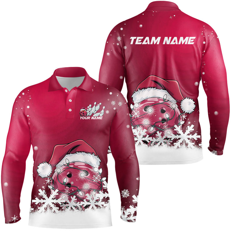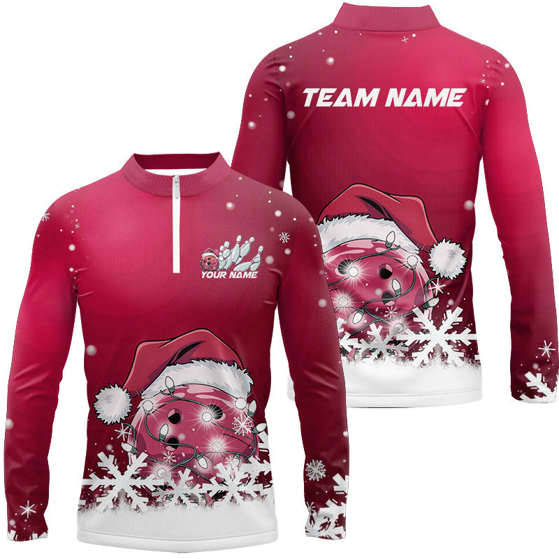 Pink Snowflake Custom Christmas Bowling Shirts For Men, Santa Bowling Team Outfit Bowler Shirt IPHW7866