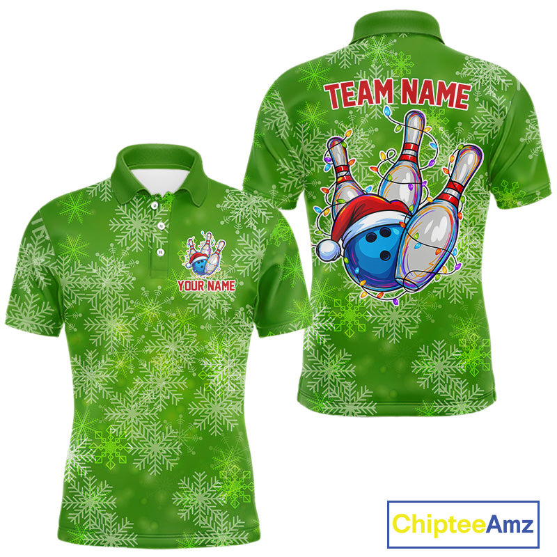 Personalized Funny Green Snowflake Christmas Bowling Team Shirts For Men, Christmas Bowling Gifts NQS10831