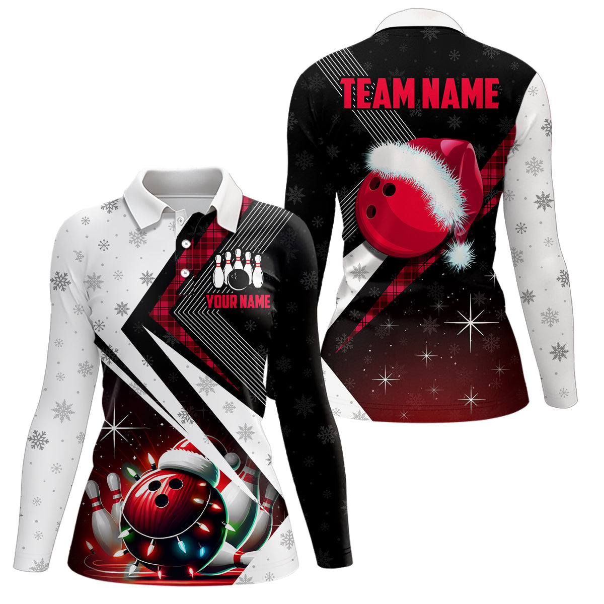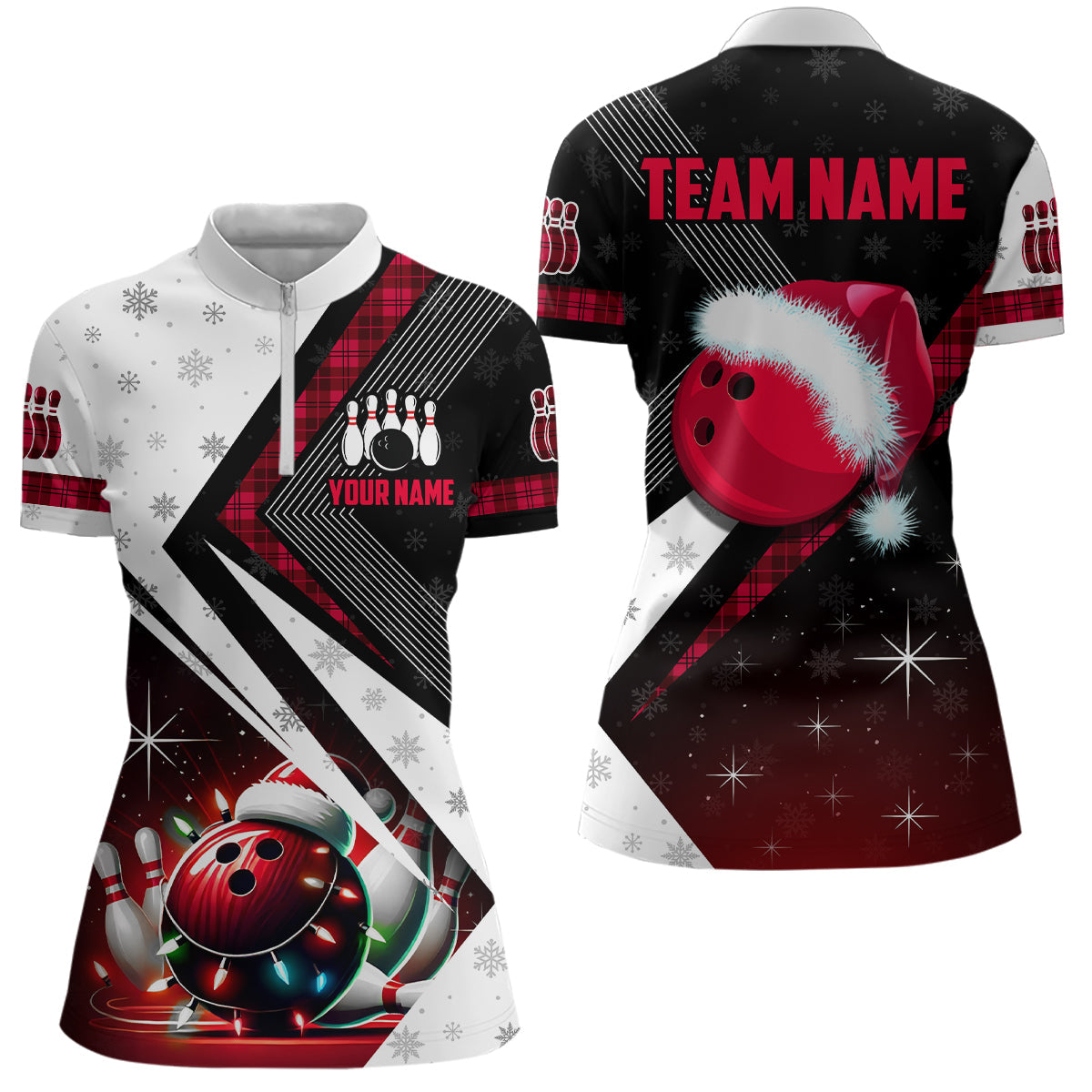 Red Christmas Bowling Polo, 1/4 zip shirts For Women Custom Team Bowling Jerseys Xmas Gift For Bowlers NQS8981