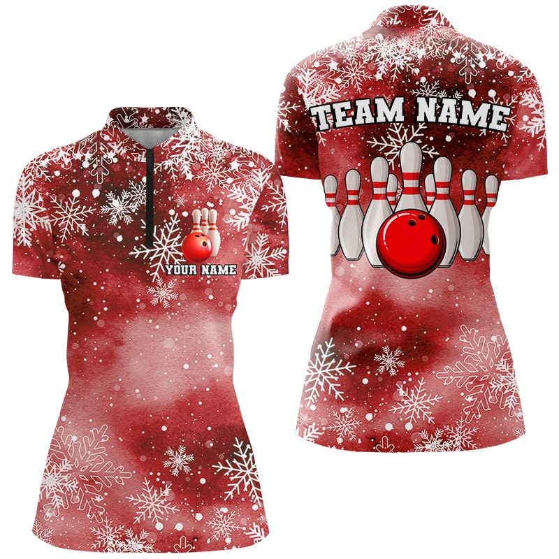 Red Snowflake Christmas pattern Women's Bowling shirt Custom Christmas Team Bowling League Jersey NQS8855