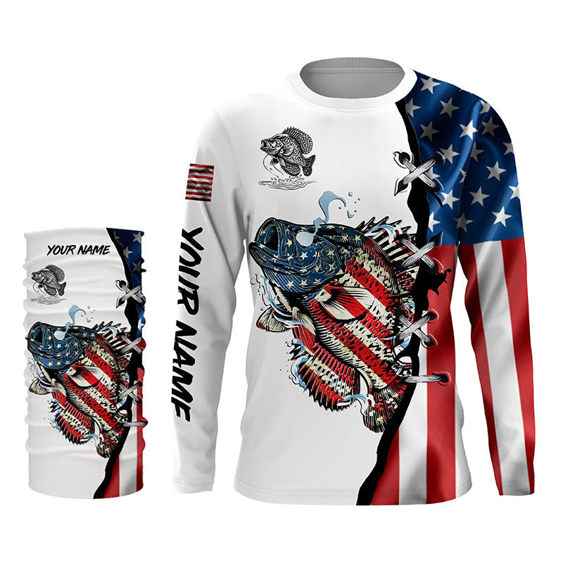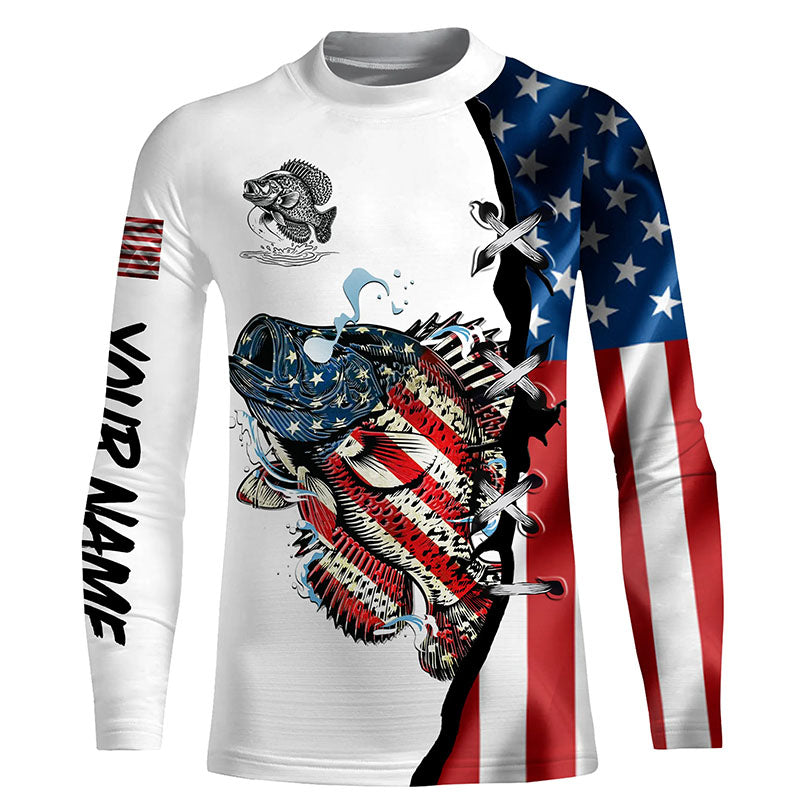 Crappie fishing legend American flag patriot UV protection Custom long sleeves fishing shirts NQS4492