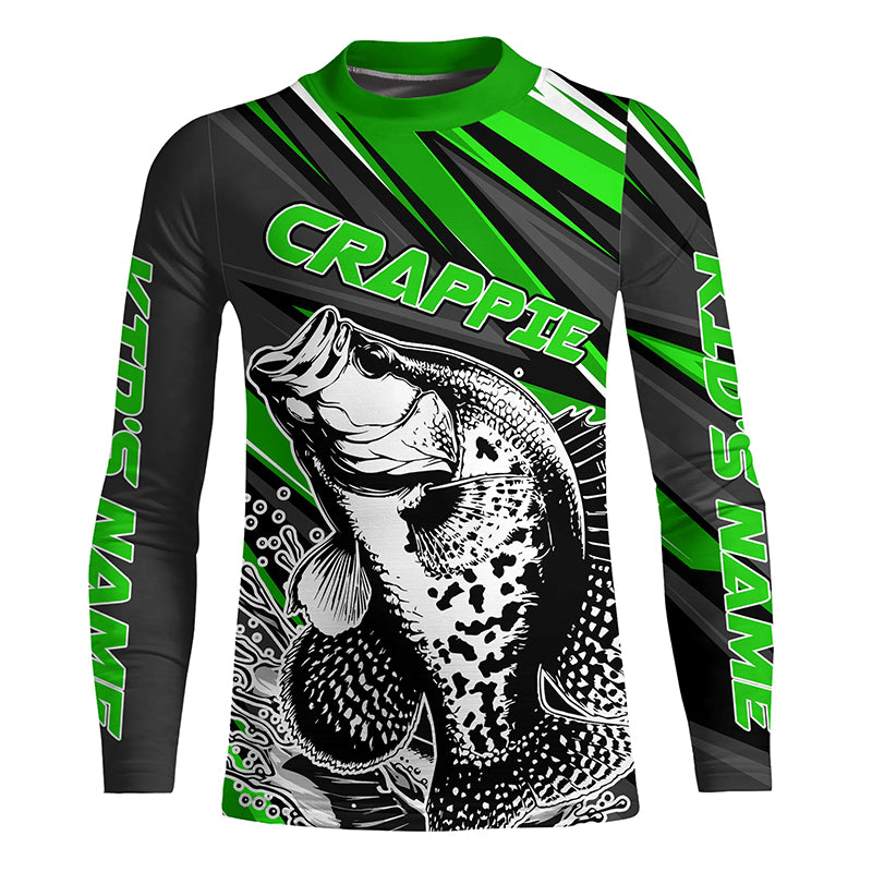 Personalized Crappie Fishing Jerseys, Crappie Long Sleeve Tournament Fishing Shirts | Green IPHW6076
