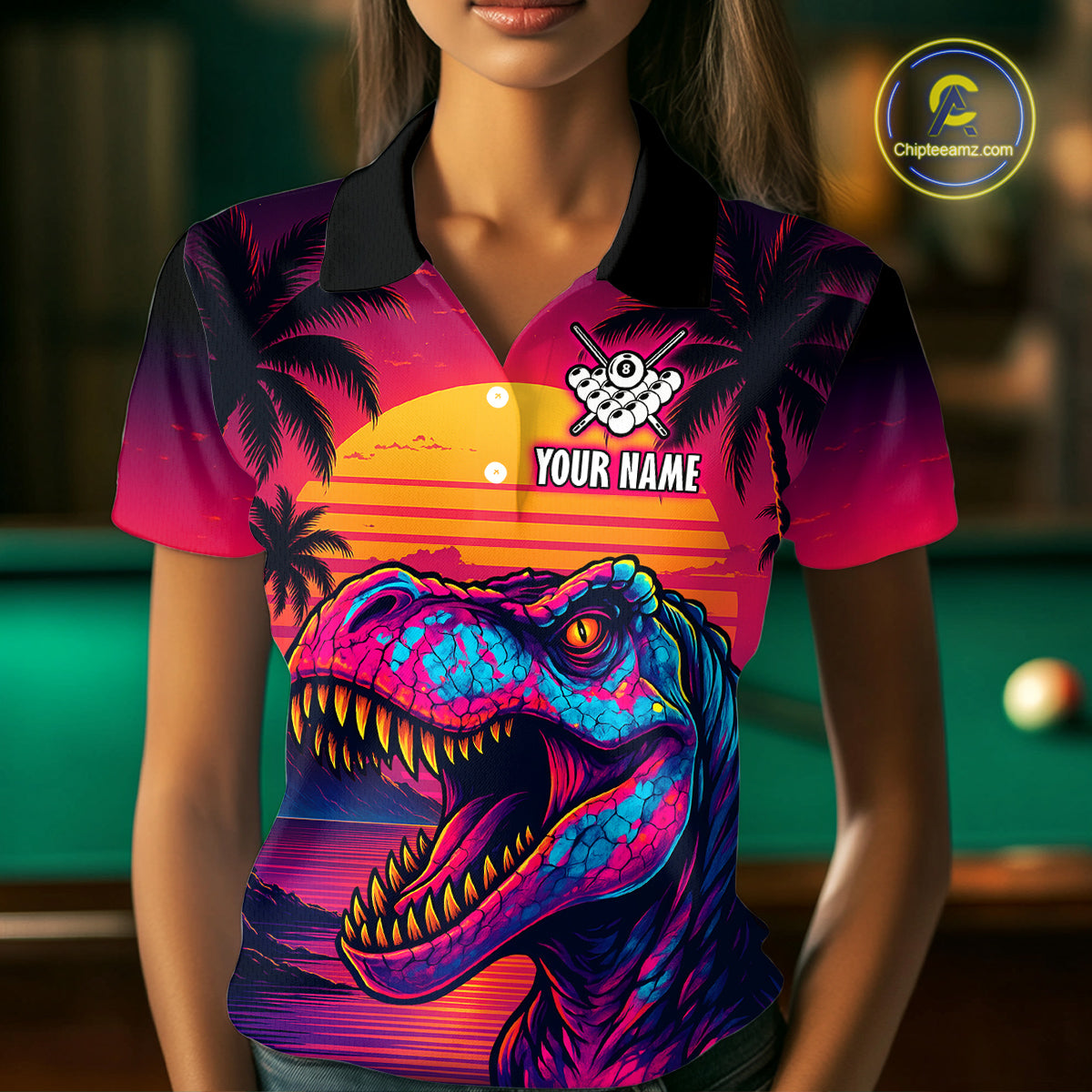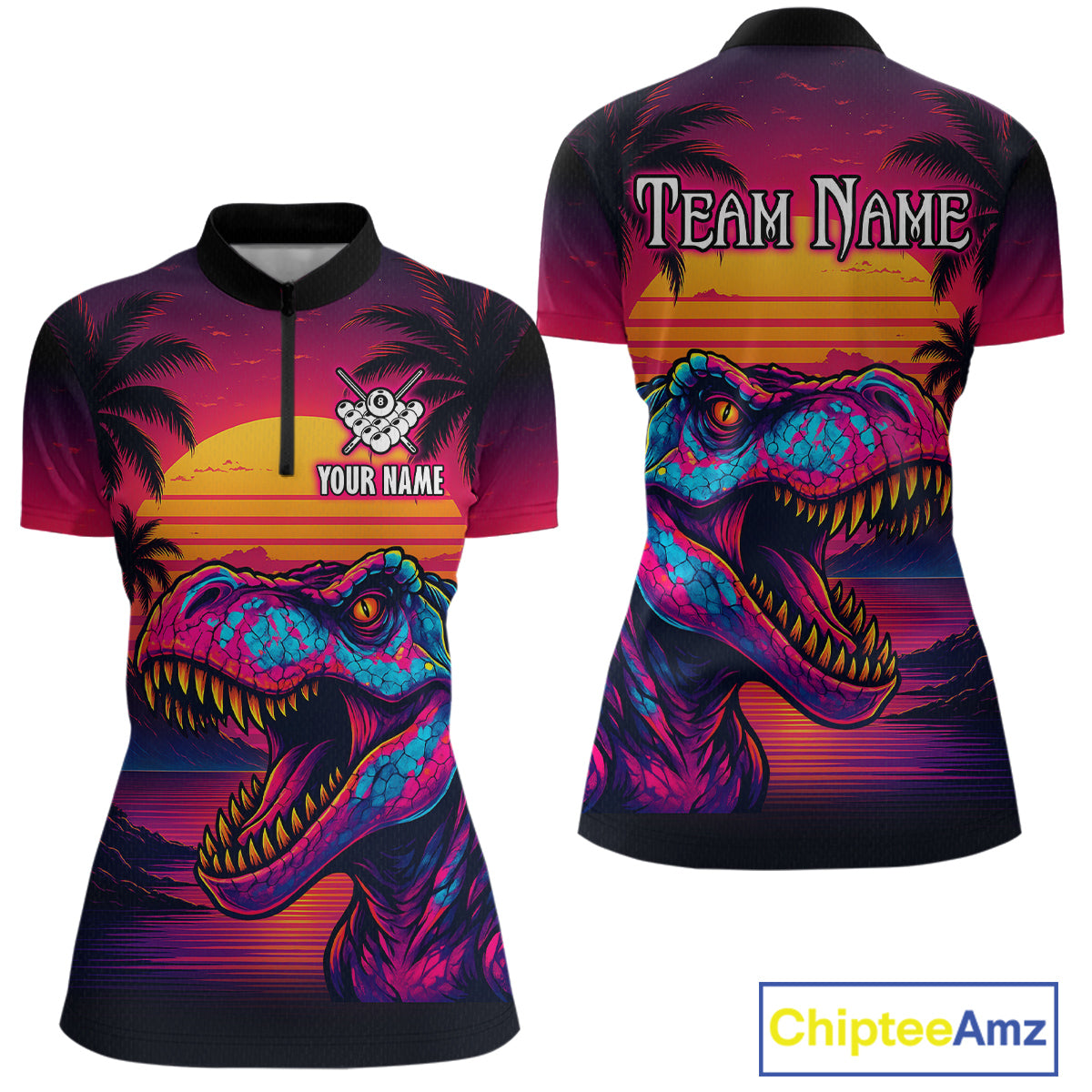 Custom Neon Dinosaur 8 Ball Billiard Shirt for Men Polo & Quarter-Zip Billiard Team Jerseys NNT81
