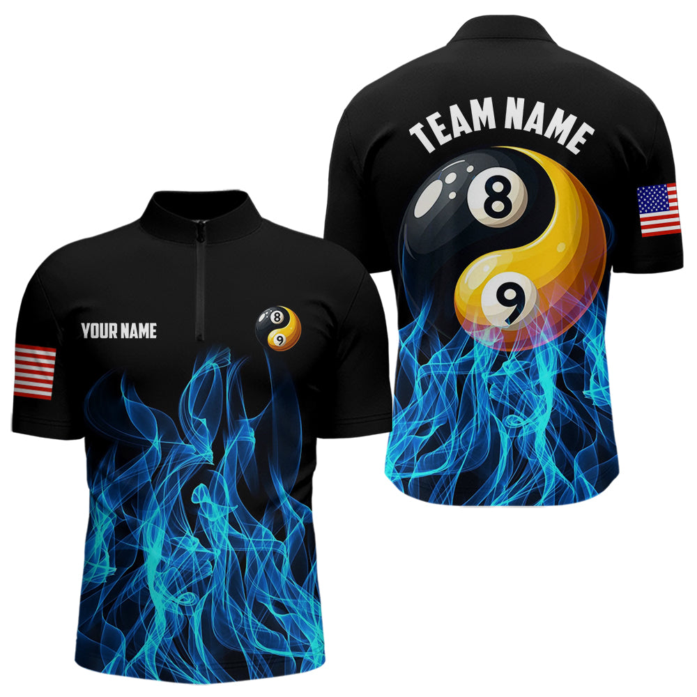 Blue Flaming Ying And Yang 8 Ball & 9 Ball Billiard Shirts For Men Custom Pool Billiard Jerseys TDM3617