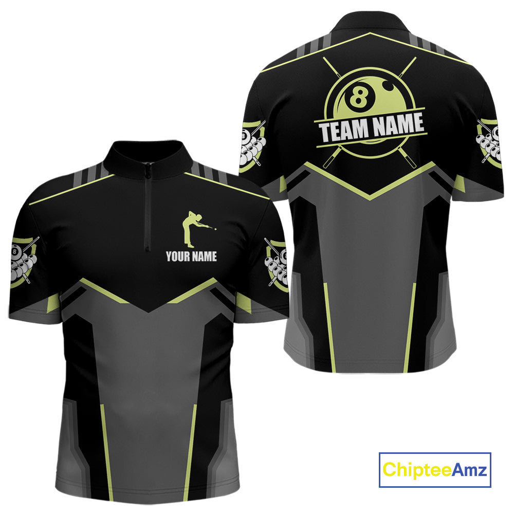 Billiard Jerseys For Men Custom Polo & 1/4 Zip Billiard Shirt, Team Pooler Short Sleeve|Green Neon TDM4741