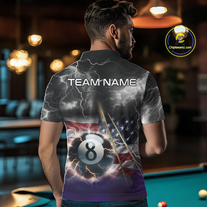 Black Purple American Flag Thunder Lightning 8 Ball Billiard Shirt For Men Custom Pool Team Jersey TDM5267