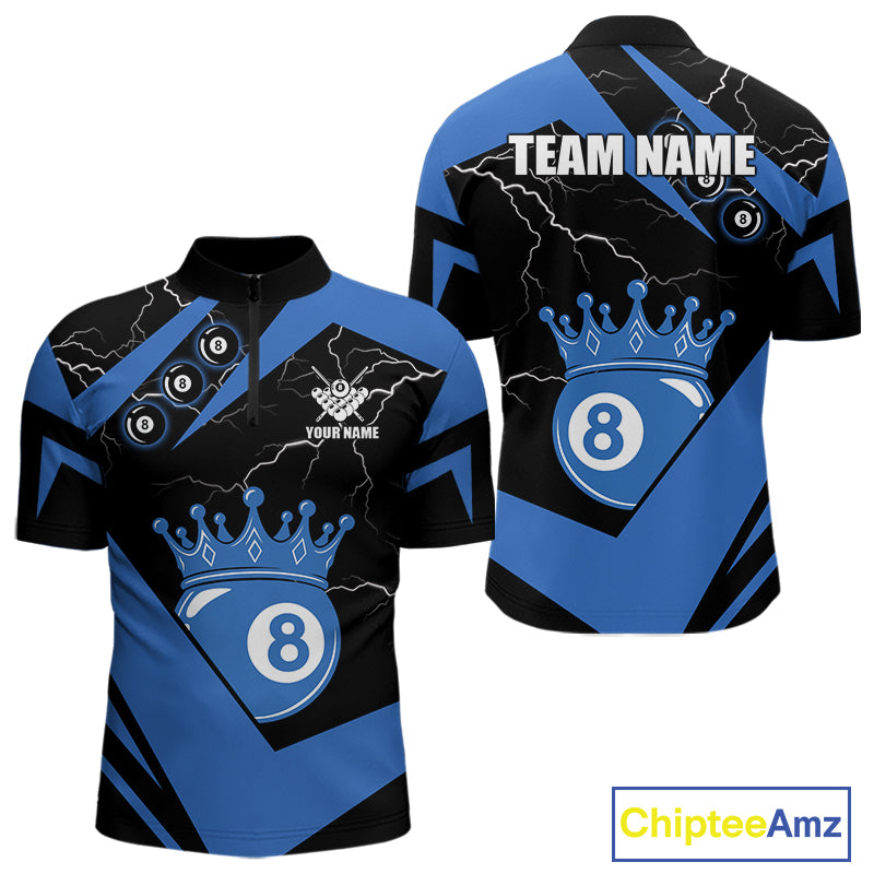 Black And Blue 8 Ball Crown Lightning Men's Billiard Shirt Custom Pool Team Jersey Polo & 1/4 Zip TDM5311