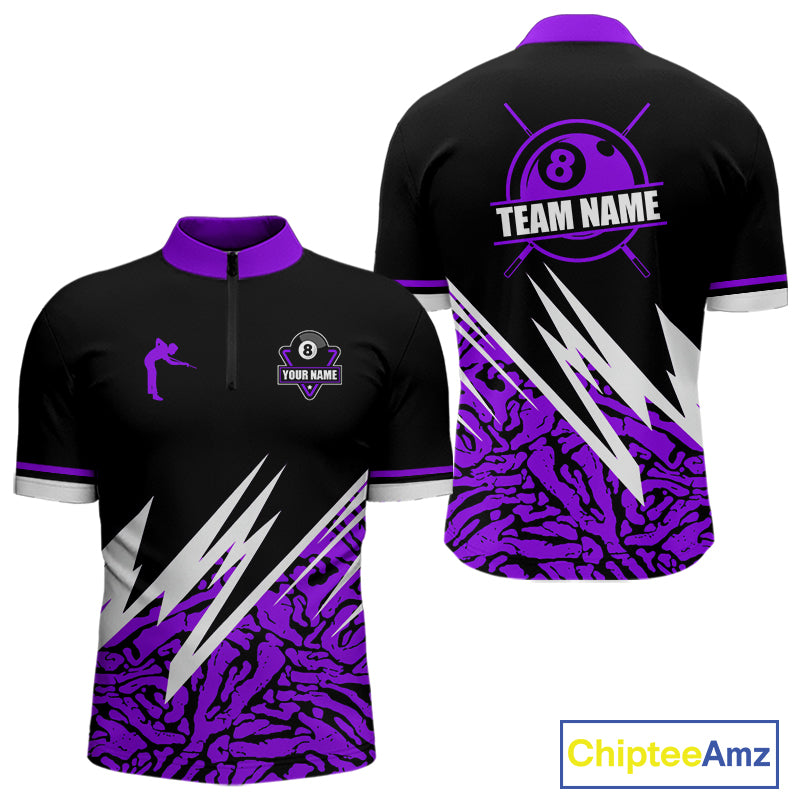 Personalized 8 Ball Billiard Jersey For Men Custom Black And Purple Pool Team Shirt Polo & 1/4 Zip TDM5340