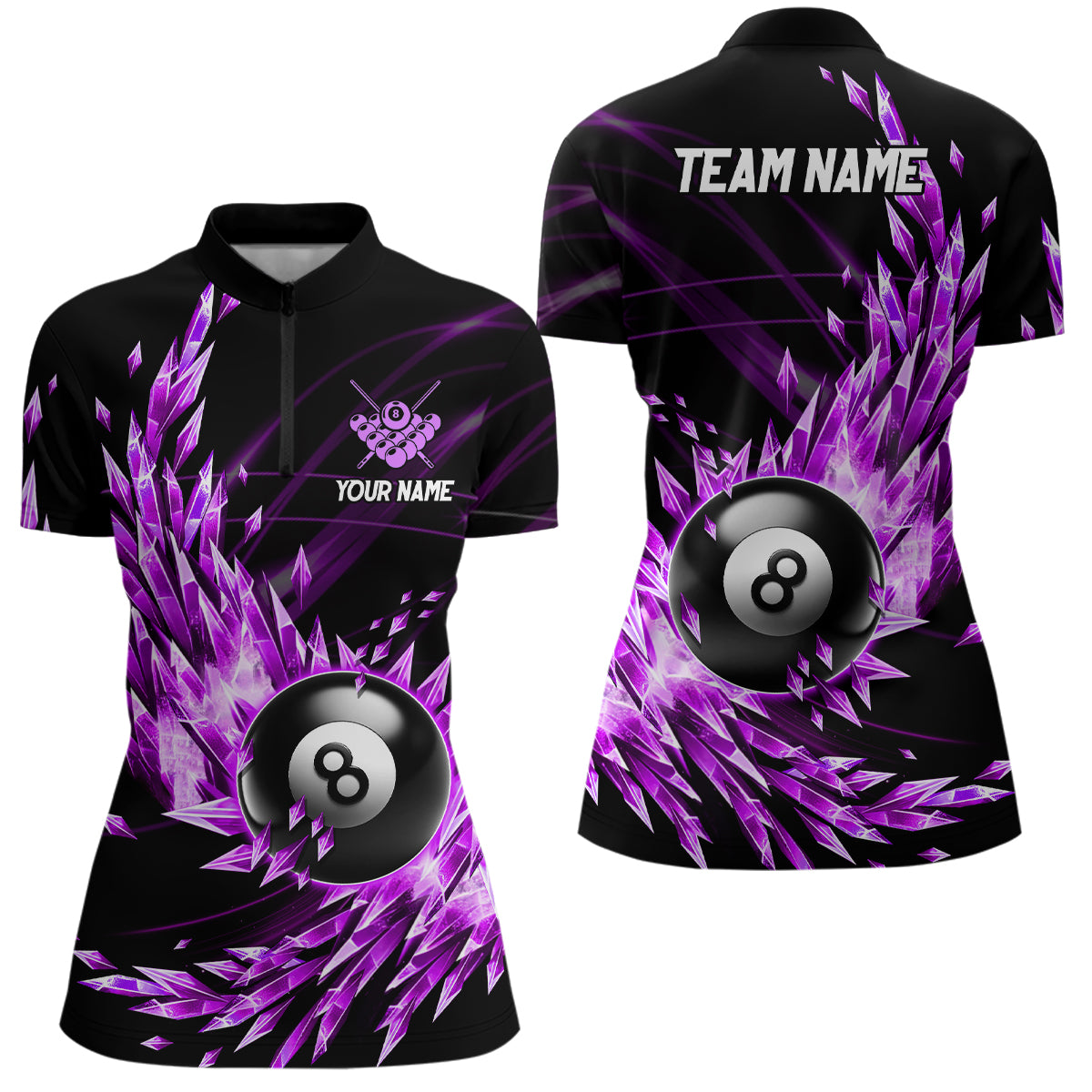 Purple Frozen Ice Custom Women Billiard Polo & Quarter-Zip Shirt, 8 Ball Pool Billiard Attire Jersey TDM1706